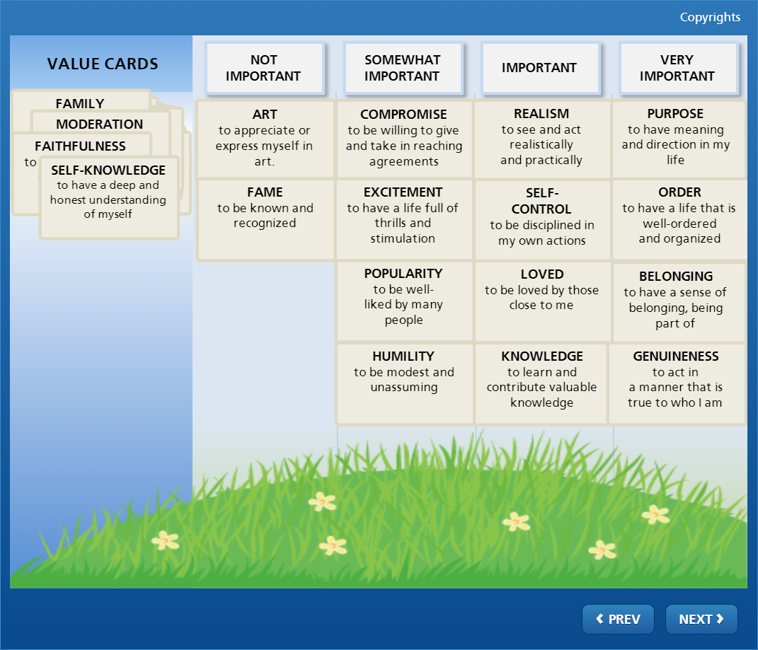 Your values are the bedrock of your life. Keeping a strong sense of your values means that you’ll be better able to weather life’s storms. On the other hand, if you lack a sense of your own values and principles, you lose a valuable source of guidance and stability. And without a strong sense of your values and where they come from, you might be surrendering control of your core values to influences you’re not even aware of.